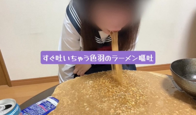 title : [自然嘔吐]すぐ吐いちゃう色羽のラーメン嘔吐[自撮り][ゲロ]