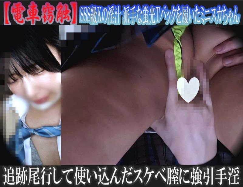 title : 【電車窃触】SSS級Kの淫汁 派手な蛍光Tバックを履いたミニスカちゃんを追跡尾行し使い込んだスケベ膣に強引手淫